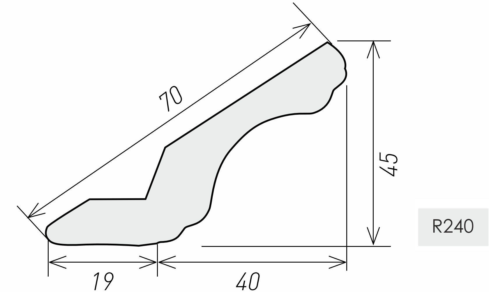 Радиусный: 620х70 мм