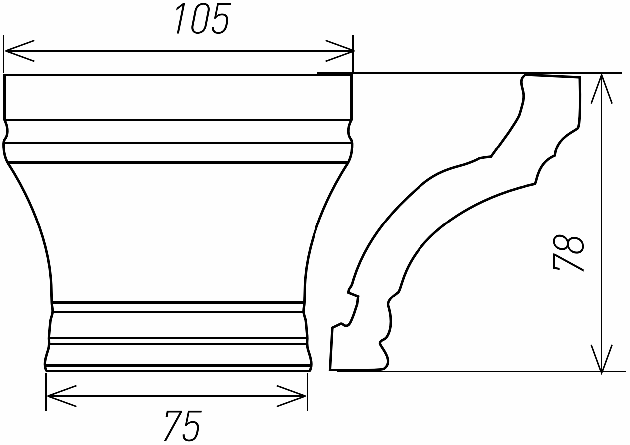 Карниз верхний полукруглый, МДФ с накаткой из древесной пульпы, RS75-01-9 (109х88х420х420мм) Возможность изготовления: в краске