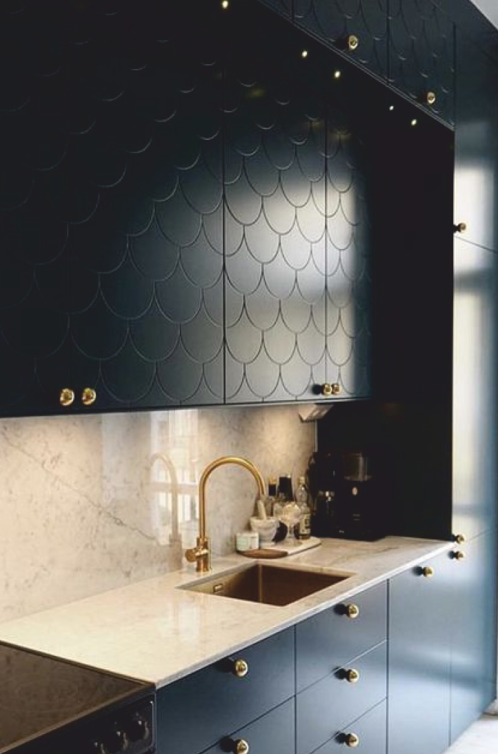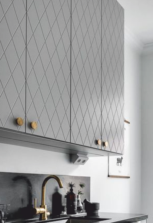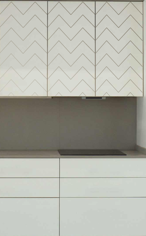 Простой и элегантный рисунок, который добавляет мебели выразительности. Такие модели идеально комбинируется с гладкими фасадами, что позволяет визуально исправить недостатки комнаты и подчеркнуть достоинства, а еше — добавить стиля и акцентов.